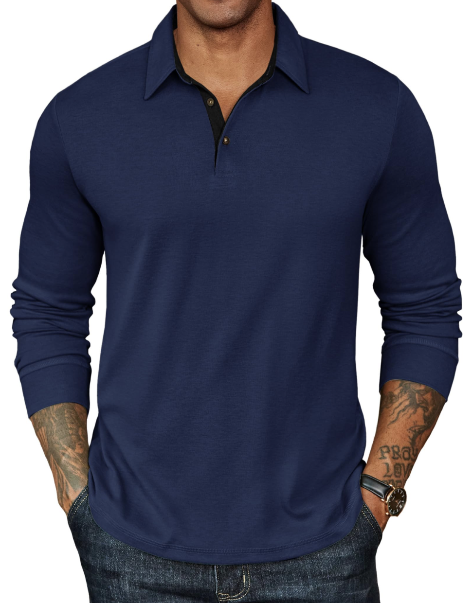 COOFANDY Mens Long Sleeve Polo Shirts Classic Casual Button Polo Tee Lightweight Collared Golf Shirt
