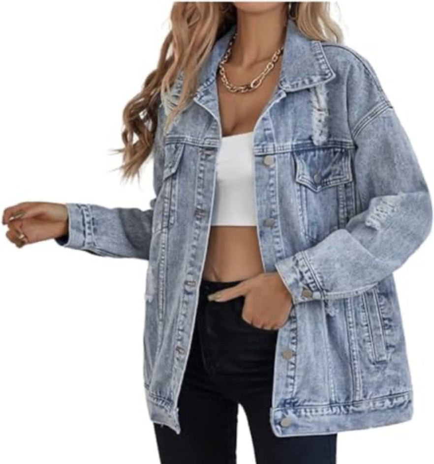 Be the first to review “LifeShe Women’s long oversized denim jacket boyfriend ripped distressed jean jackets coat”